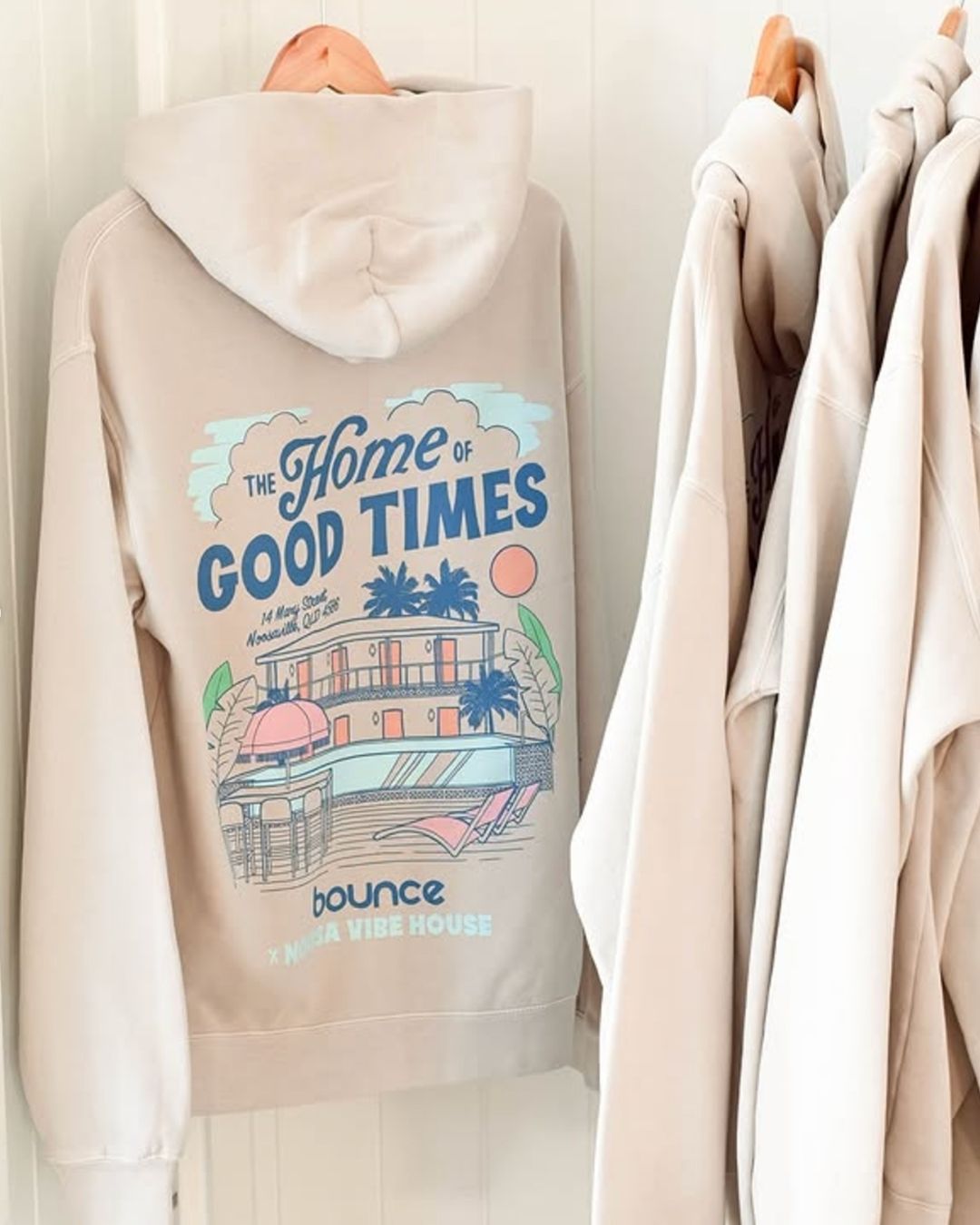 With a customer that skews more affluent than the typical low-budget traveller, we saw an opportunity for Bounce to create an additional revenue stream through well considered and high quality 'tourist merch'. We proposed a range of location-specific tees to be sold in each Bounce reception, capturing the essence of each location in on-trend styles - not your standard cheap and cheerful tourist tee. Production was handled with a focus on quality, giving the range a premium feel to match the elevated Bounce experience.